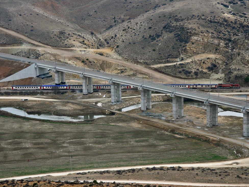 Proje Bandırma-Bursa-Ayazma-Osmaneli Hızlı Tren Projesi’nin ilk adımı olan Bursa- Yenişehir hattı ve Yenişehir-Osmaneli hatlarının 55 km lik kısmını oluşturmaktadır. Hat, 250 kilometre hıza uygun olarak inşa edilmektedir. Ancak, hatta yolcu trenleri saatte 200, yük trenleri ise 100 kilometre ile çalışacak. Proje kapsamında toplam uzunluğu 5882 m olan 12 adet Viyadük, toplam uzunluğu 288 m olan 7 adet köprü, 11 adet üstgeçit ve 30 adet altgeçit bulunmaktadır. Proje hattı boyunca Bursa ilinin kuzeyinde yer alan otoyol ile kesişimler viyadüklerle geçilmiştir. Proje kapsamında 7 adet viyadük projelendirmesi yapılmıştır. Buna ek olarak 5 adet köprü, 9 adet üstgeçit köprüsü ve 19 adet altgeçit projelendirilmiştir. Bursa ovasının tabanı alüvyonlardan oluştuğu için, hat boyunca tabanda yumuşak, zayıf zeminler yer almaktadır. Zayıf zeminler hem sanat yapısı temellerinde hem de dolgu altında stabilite ve oturma problemlerine neden olmaktadır. Bu nedenle proje kapsamında muhtelif kesimlerde ve çok sayıda zemin güçlendirmesi projelendirilmiştir. Dolgu tabanlarında derin karıştırma, jet enjeksiyonu kolonları ve beton fore kazıklar uygulanan yöntemlerden bazılarıdır. Bunlar arasından uzunluğu yaklaşık 1000 m’yi bulan bir kesimi özellikle anmak gerekir ki, bu kesimde yapılan araştırma çalışmaları sonucunda tabanda 90 m derinliğe varan organik içeriğe sahip zayıf zemin istifi tespit edilmiştir. Yüksek dolguyla geçilen bu kesimde, dolgunun stabilitesini sağlamak, oturma miktarını kontrol altına almak için en ekonomik ve verimli çözüm üzerinde çalışılmış ve derinlikleri 40 m’ye varan beton kazıklarla dolgu tabanı güçlendirilmiştir. Ayrıca bazı dolgu tabanlarında, alttaki zemin güçlendirmesinin işlevini artırmak, dolgunun yanal yayılımının önüne geçmek için geosentetik malzemelerle de güçlendirme yapılmıştır. Viyadük ve köprü temellerinde fore kazıklara ek olarak, sağlam zeminin çok derinde yer aldığı noktalarda baret kazıklı temeller tasarlanmıştır. Yer altı suyunun yüzeye yakın olduğu bu bölgede, köprü ve viyadük temellerin kazılarının yapılması güç olduğundan, suyla karşılaşılan noktalarda konsol palplanj destekli kazılarla probleme çözüm getirilmiştir. |